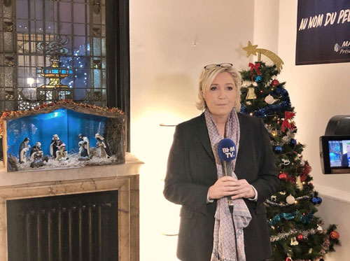 في احدى المقابلات التلفزيونية لـ ماري لوبان زعيمة اليمين المحافظ في فرنسا، رفضت المحطة التي أجرت القاء معها إظهار مغارة وشجرة العيد في الصورة.